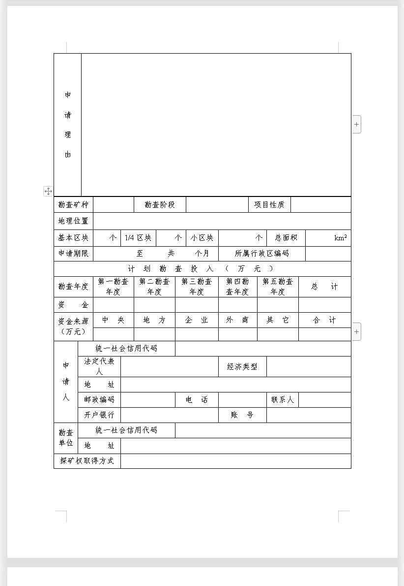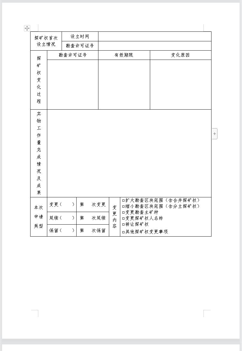 非油氣探礦權(quán)延續(xù)申請登記書模板下載