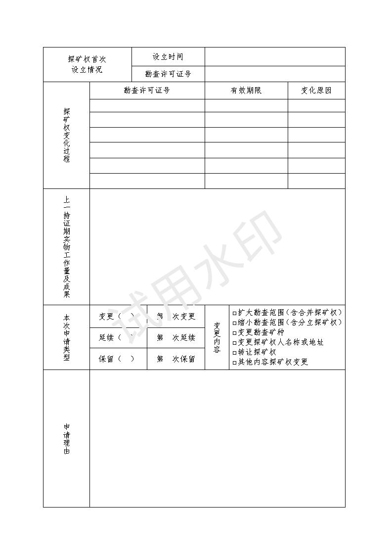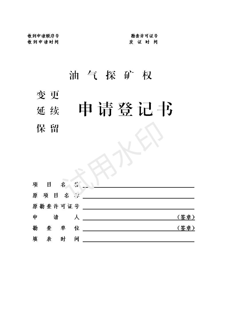 油氣探礦權(quán)延續(xù)申請登記書模板下載