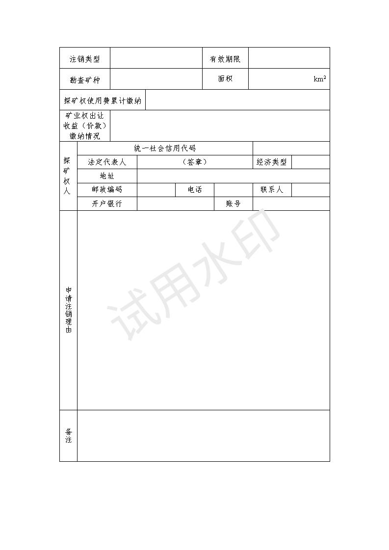 油氣探礦權(quán)注銷申請(qǐng)登記書模板下載