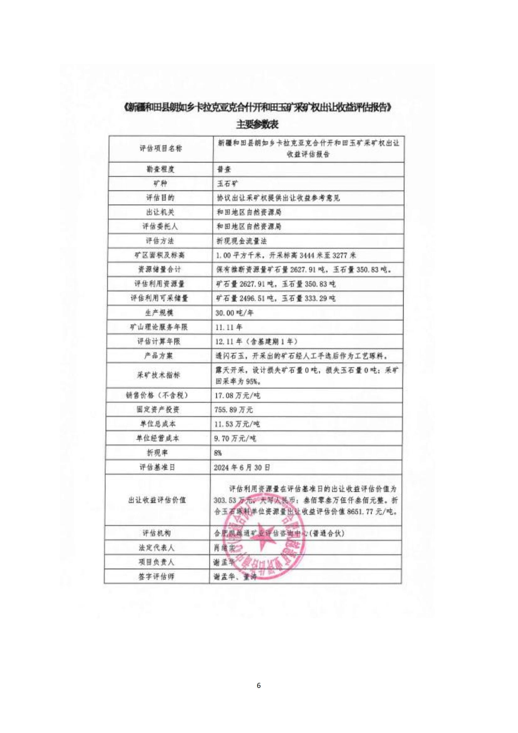 關(guān)于新疆于田縣亞勒克賽和田玉礦等8宗礦采礦權(quán)出讓收益評(píng)估報(bào)告通過(guò)論證的公示