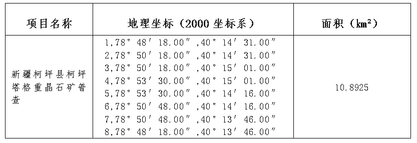 新疆柯坪縣柯坪塔格重晶石礦普查探礦權(quán)公開掛牌出讓公告
