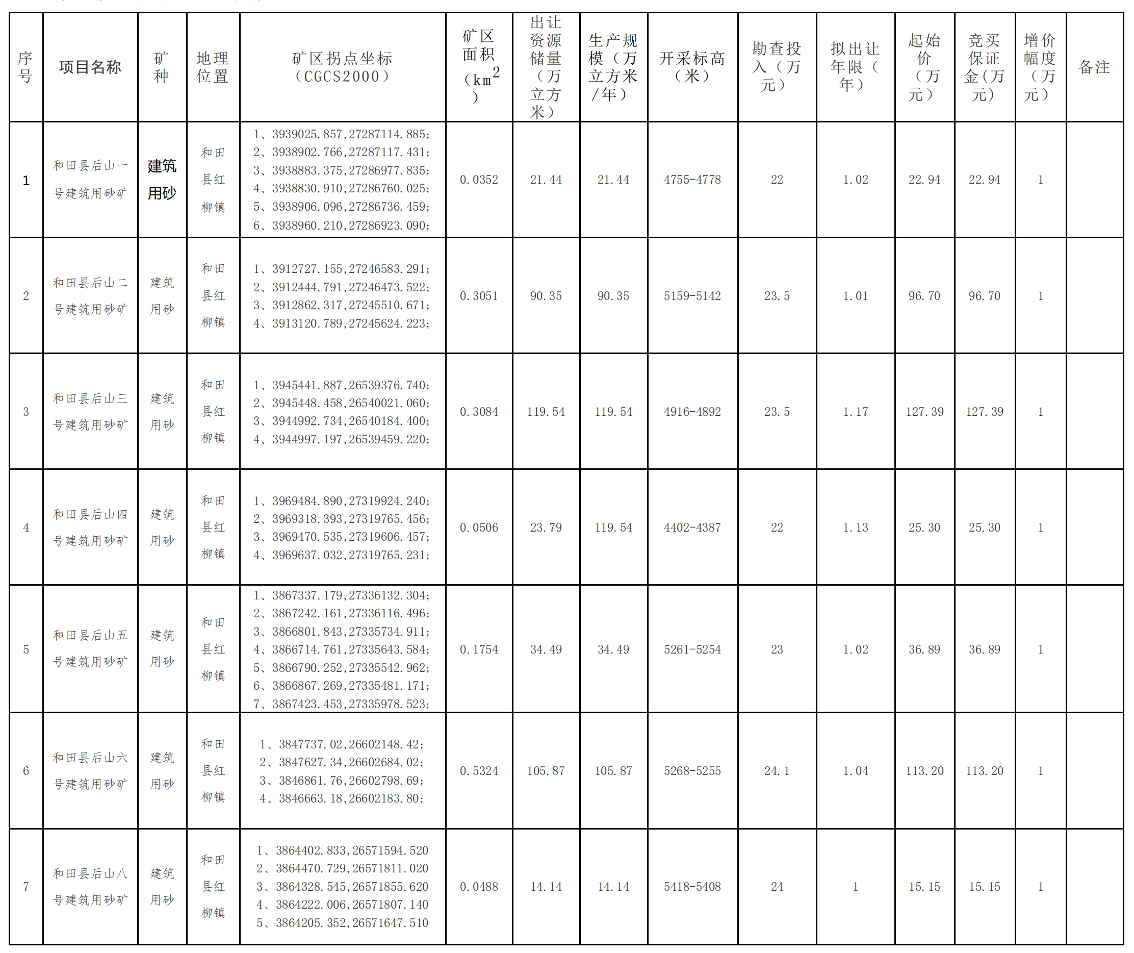 依據(jù)《中華人民共和國礦產(chǎn)資源法》《礦業(yè)權(quán)出讓交易規(guī)則》《新疆維吾爾自治區(qū)礦產(chǎn)資源管理若干事項(xiàng)暫行辦法》(新自然資規(guī)〔2021〕1號(hào)),以及《國務(wù)院辦公廳關(guān)于印發(fā)整合建立統(tǒng)一的公共資源交易平臺(tái)工作方案的通知》(國辦發(fā)〔2015〕63號(hào)))等有關(guān)法律法規(guī)的規(guī)定,經(jīng)和田縣人民政府批準(zhǔn),受和田縣自然資源局的委托,和田地區(qū)行政服務(wù)和公共資源交易中心組織以下采礦權(quán)以掛牌方式公開出讓活動(dòng),現(xiàn)將有關(guān)事宜公告如下: