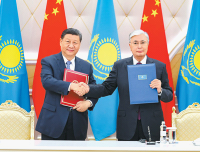 習(xí)近平指出,中哈友好根植于綿延千年的古絲綢之路,又歷經(jīng)建交32年的合作積淀,達(dá)到永久全面戰(zhàn)略伙伴的高水平,世代友好、高度互信、休戚與共成為中哈關(guān)系的主旋律。無(wú)論國(guó)際形勢(shì)如何變化,中方維護(hù)中哈友好的初心堅(jiān)定不移,推進(jìn)全方位合作的恒心堅(jiān)定不移,在彼此核心利益問(wèn)題上相互支持的決心堅(jiān)定不移,對(duì)實(shí)現(xiàn)各自國(guó)家發(fā)展目標(biāo)的信心堅(jiān)定不移。中方愿同哈方一道,攜手構(gòu)建更加富有內(nèi)涵和活力的中哈命運(yùn)共同體,為地區(qū)乃至世界的發(fā)展穩(wěn)定注入更多正能量。