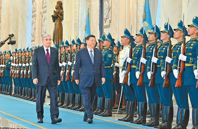 托卡耶夫?yàn)榱?xí)近平舉行隆重歡迎儀式。