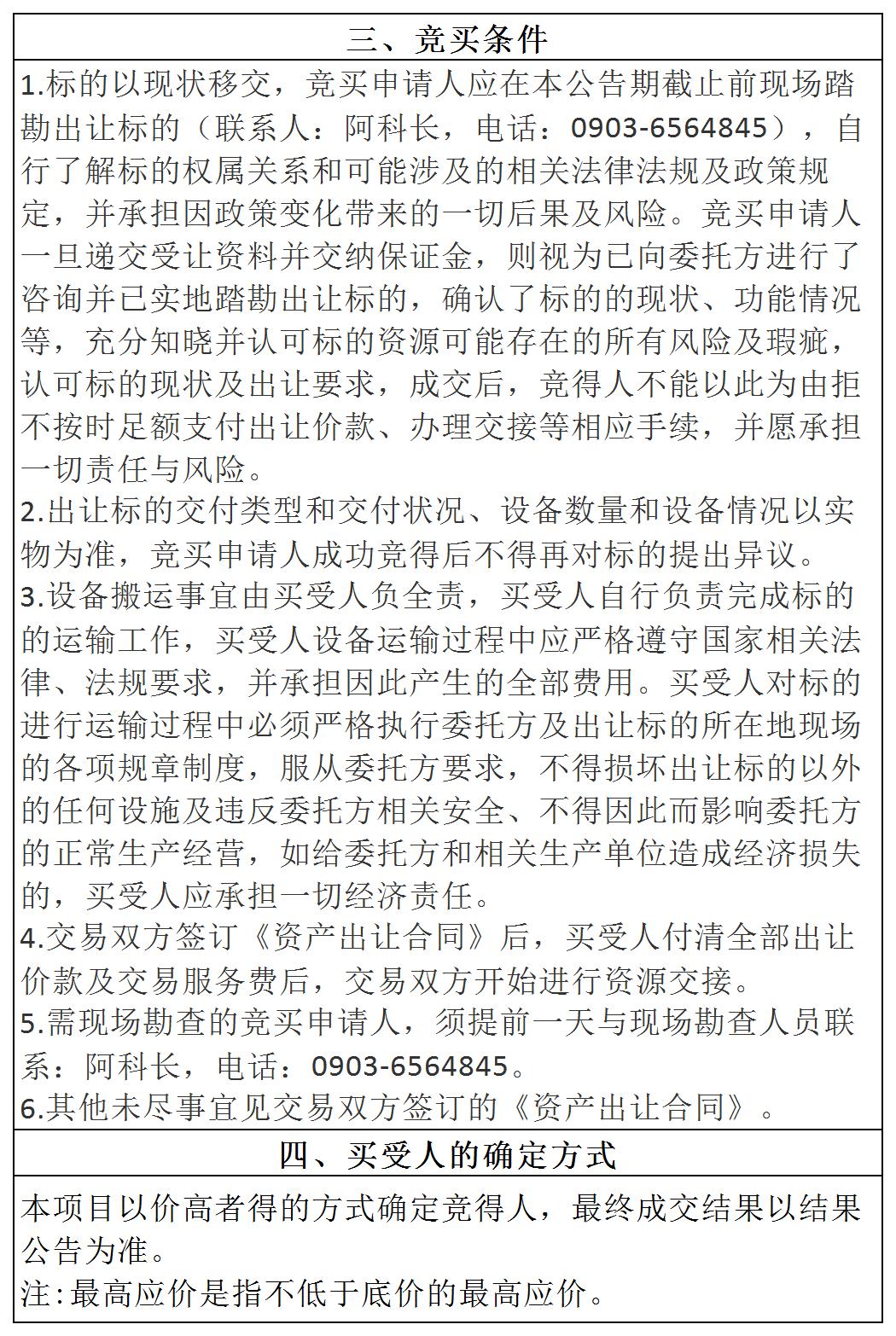 (2)如繼續(xù)應(yīng)(報)價無人應(yīng)(報)價時,則確認(rèn)起始狀態(tài)的價格為成交價格,起始狀態(tài)的最高應(yīng)(報)價者為應(yīng)(報)價最高的意向方。按照本須知第6條的規(guī)定確認(rèn)成交人。