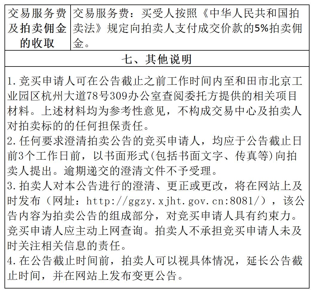 (3)因和田地區(qū)行政服務(wù)和公共資源交易中心操作失誤導(dǎo)致起始價、加價幅度、自由競價階段結(jié)束時間、限時競價階段結(jié)束時間、優(yōu)先權(quán)人行權(quán)時間等設(shè)置錯誤的;