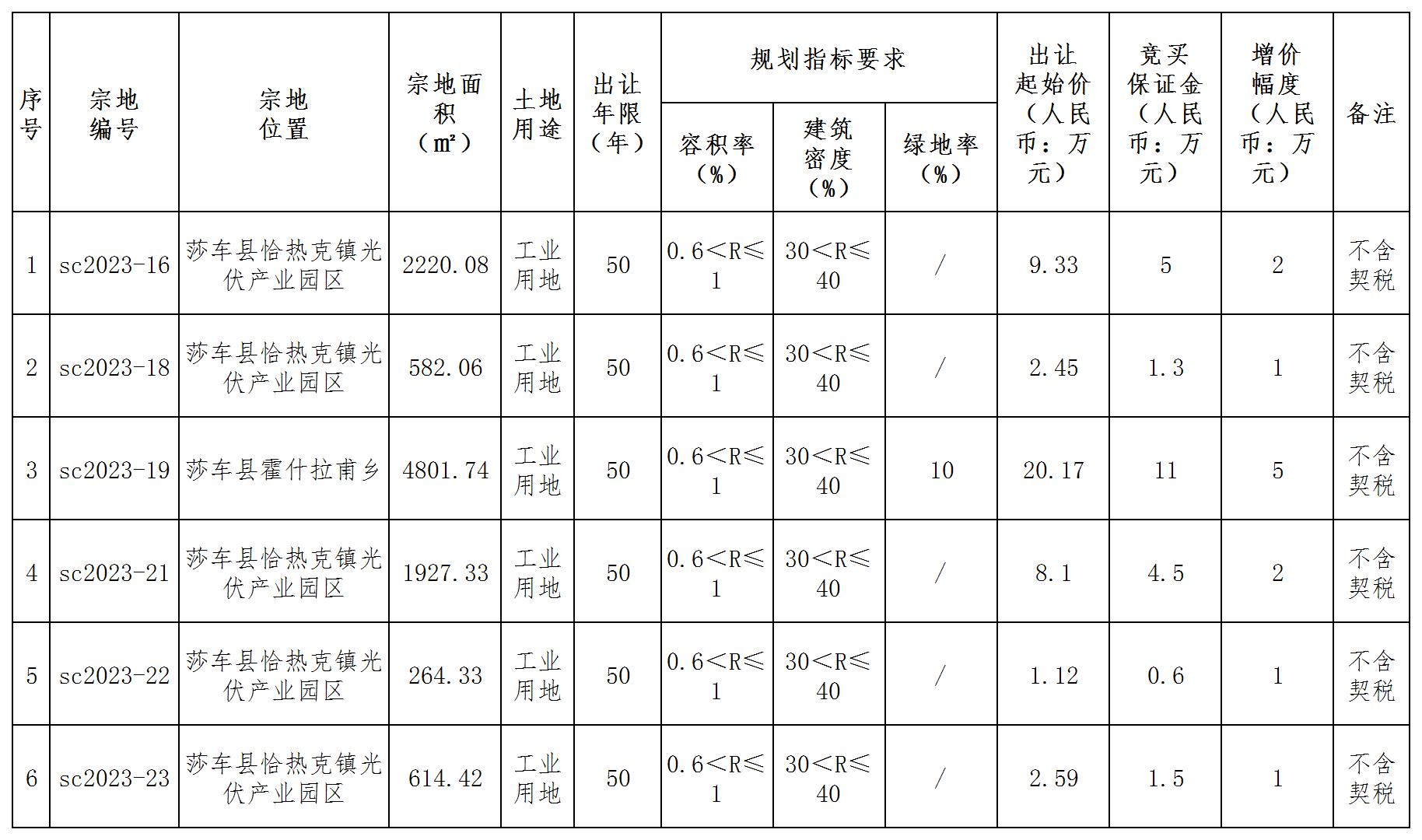 根據(jù)《中華人民共和國土地管理法》《招標拍賣掛牌出讓國有建設用地使用權規(guī)定》(國土資源部令第39號)、《自治區(qū)深化公共資源交易平臺整合共享工作方案〉的通知》(新政辦函〔2019〕250號)等有關法律法規(guī)及文件的規(guī)定,經(jīng)莎車縣人民政府批準,莎車縣自然資源局決定以掛牌方式出讓6(幅)地塊的國有建設用地使用權。并委托新疆國源土地礦產(chǎn)資源交易中心組織實施?,F(xiàn)將有關事項公告如下: