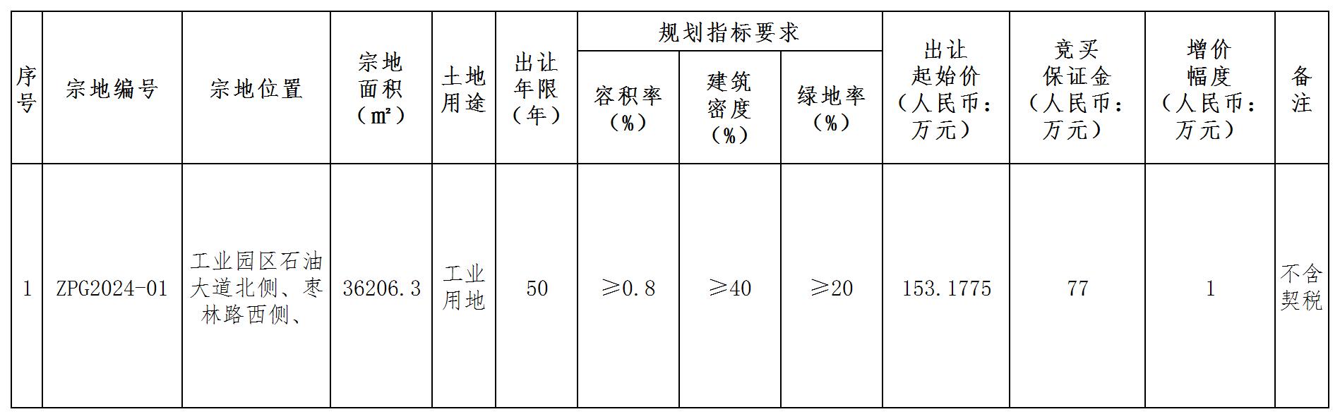 根據(jù)《中華人民共和國土地管理法》《招標拍賣掛牌出讓國有建設(shè)用地使用權(quán)規(guī)定》(國土資源部令第39號)、《自治區(qū)深化公共資源交易平臺整合共享工作方案〉的通知》(新政辦函〔2019〕250號)等有關(guān)法律法規(guī)及文件的規(guī)定,經(jīng)澤普縣人民政府批準,澤普縣自然資源局決定以掛牌方式出讓1(幅)地塊的國有建設(shè)用地使用權(quán)。并委托新疆國源土地礦產(chǎn)資源交易中心組織實施?,F(xiàn)將有關(guān)事項公告如下: