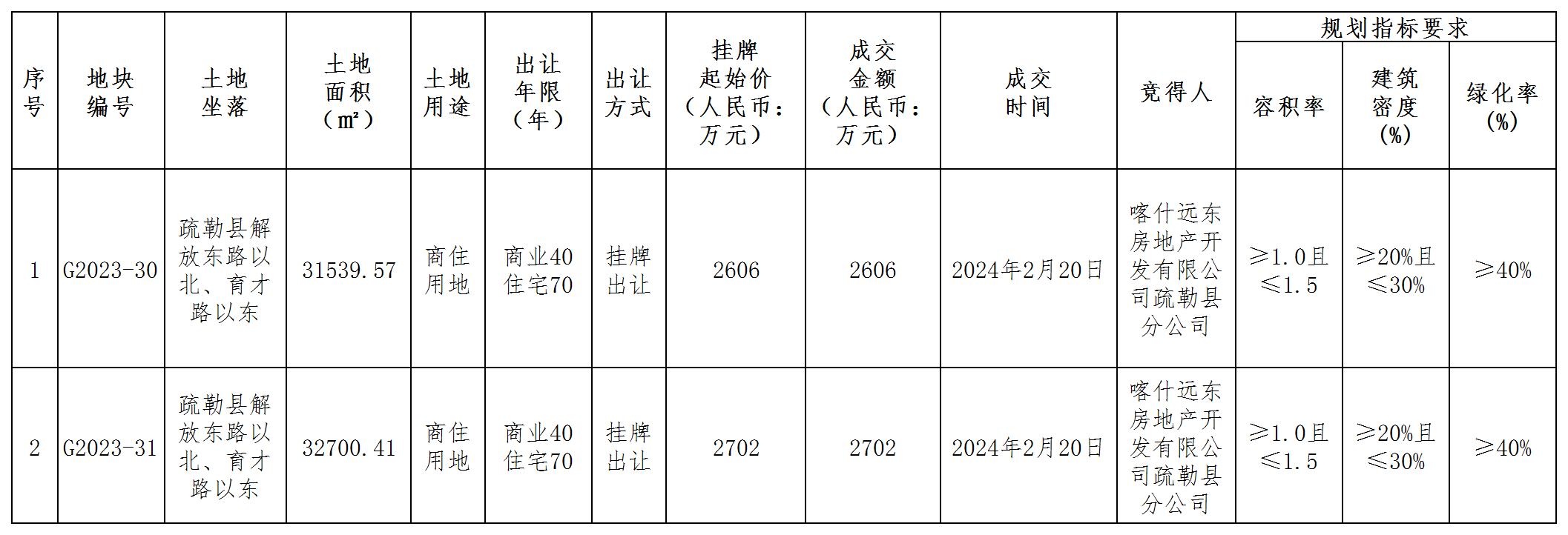 疏勒縣自然資源局國有建設用地使用權(quán)成交結(jié)果公示
