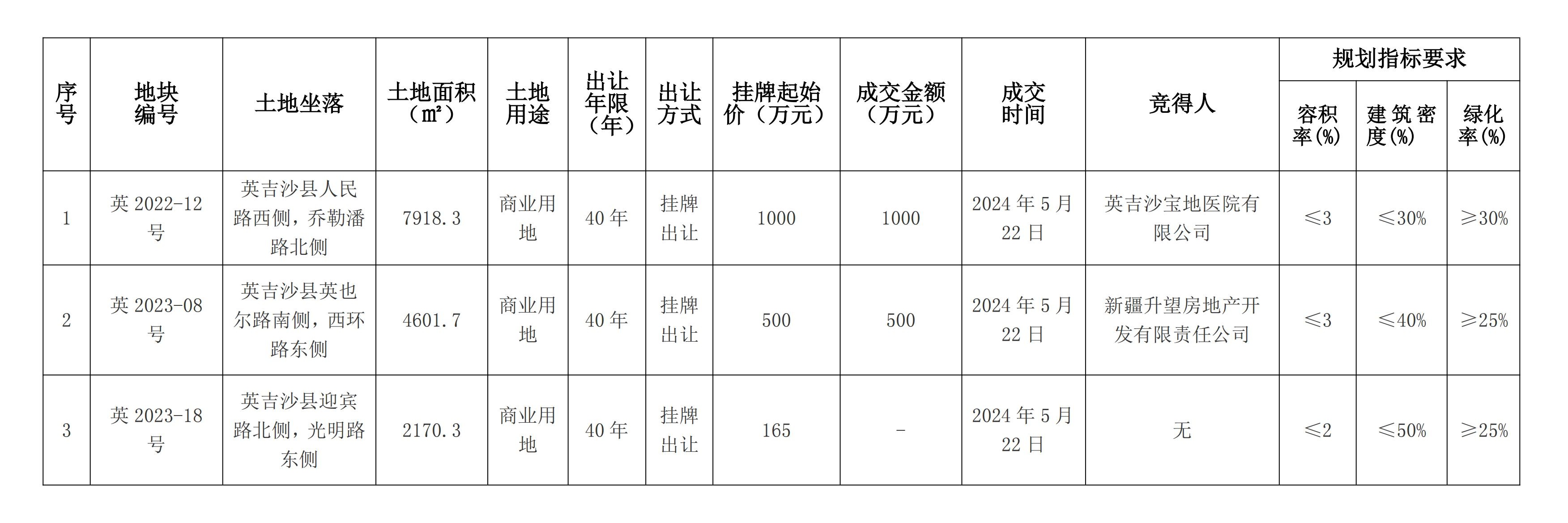 英吉沙縣自然資源局國有建設(shè)用地使用權(quán)成交結(jié)果公示