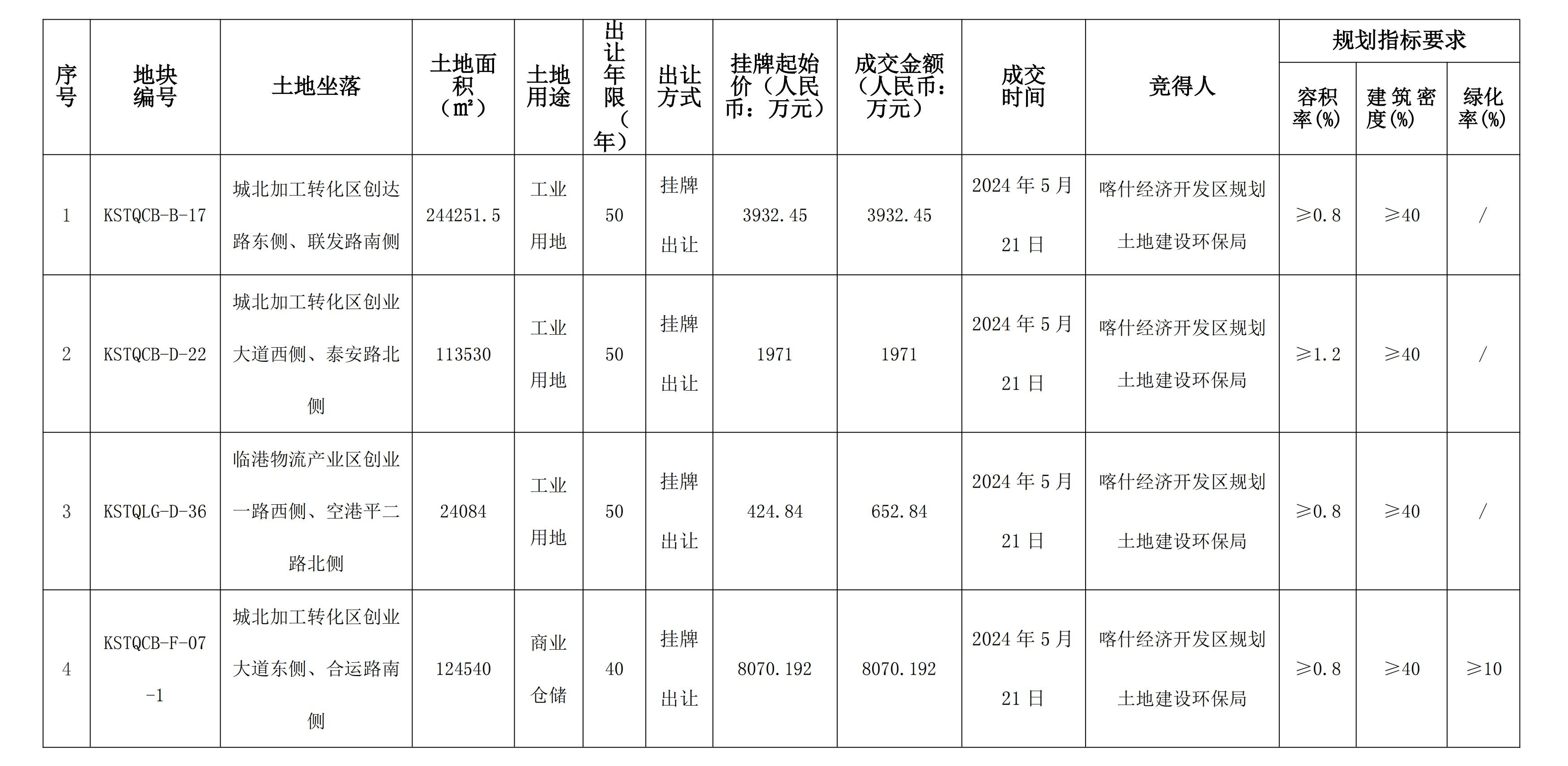 喀什地區(qū)自然資源局喀什經(jīng)濟(jì)開發(fā)區(qū)分局國(guó)有建設(shè)用地使用權(quán)成交結(jié)果公示