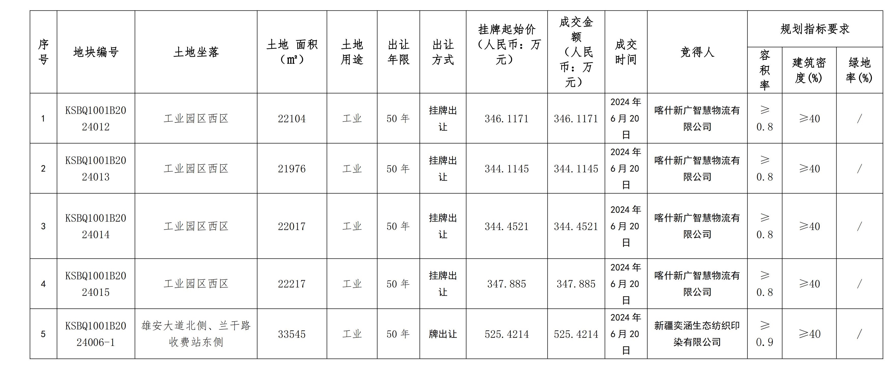 喀什市國有建設(shè)用地使用權(quán)掛牌出讓成交結(jié)果公示
