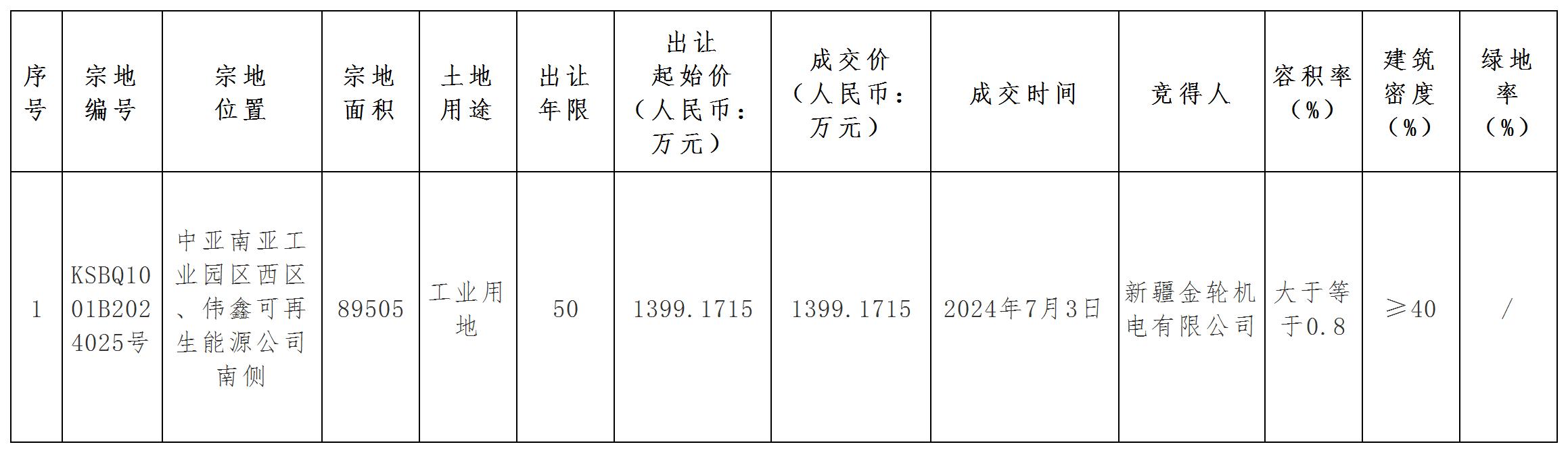 喀什市自然資源局國有建設(shè)用地使用權(quán)成交結(jié)果公示