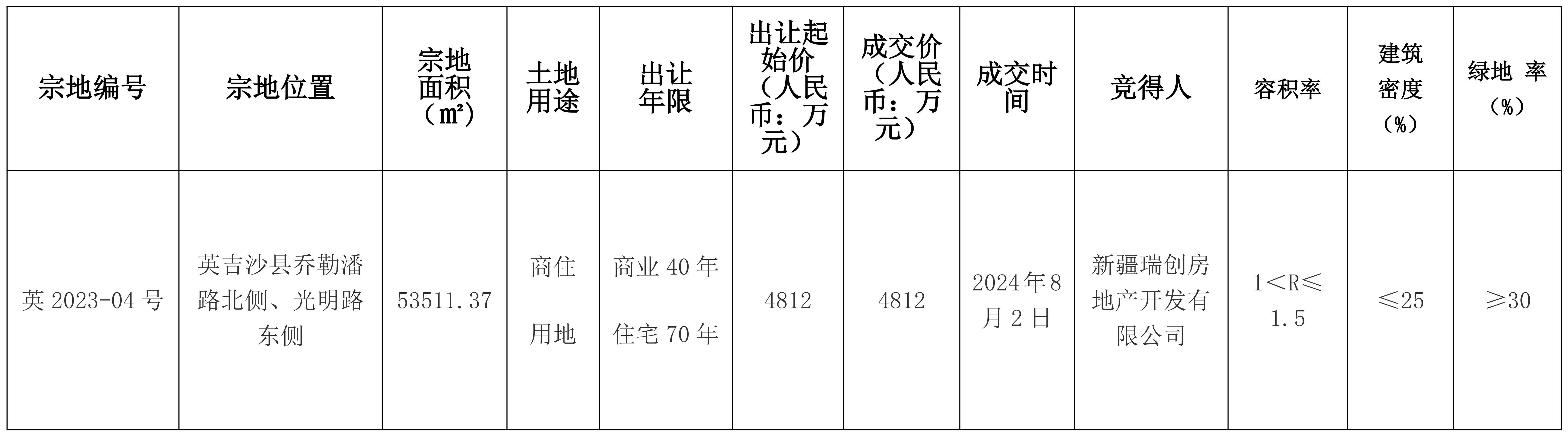 英吉沙縣自然資源局國(guó)有建設(shè)用地使用權(quán)成交結(jié)果公示