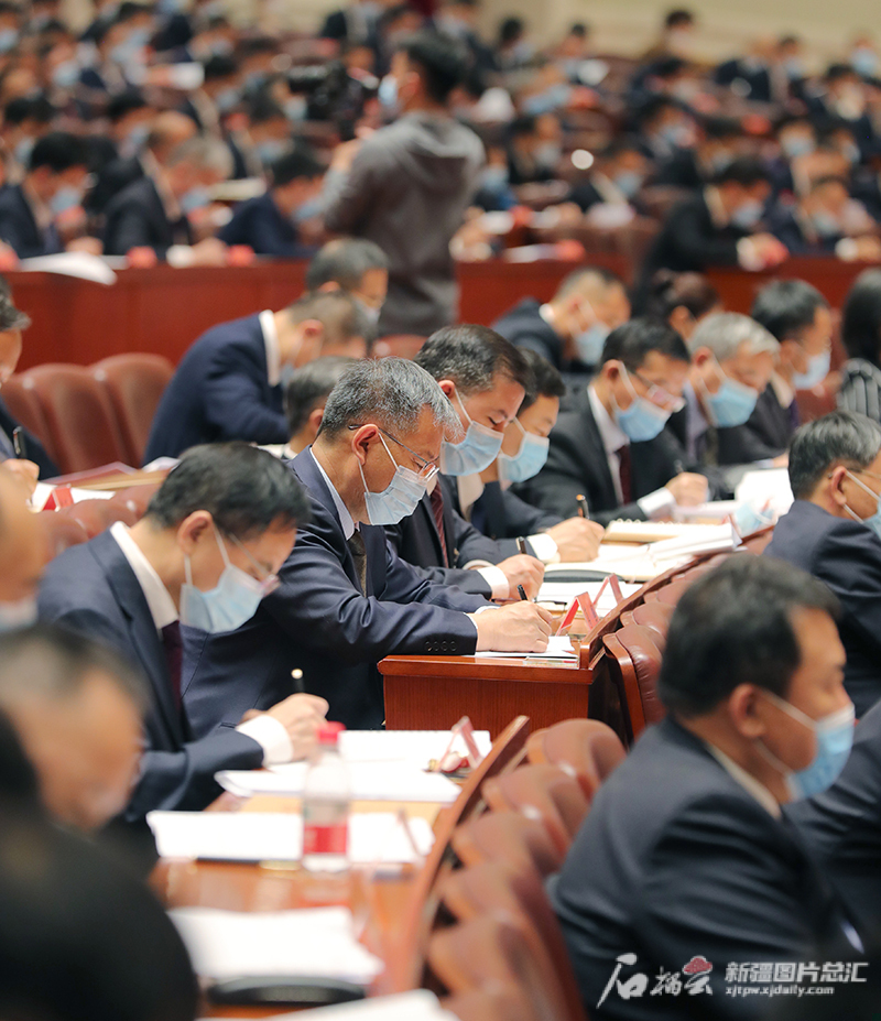 5月14日,與會人員在認真聽取、記錄自治區(qū)黨委書記馬興瑞受自治區(qū)黨委常委會委托作的工作報告。石榴云/新疆日報記者崔志堅攝