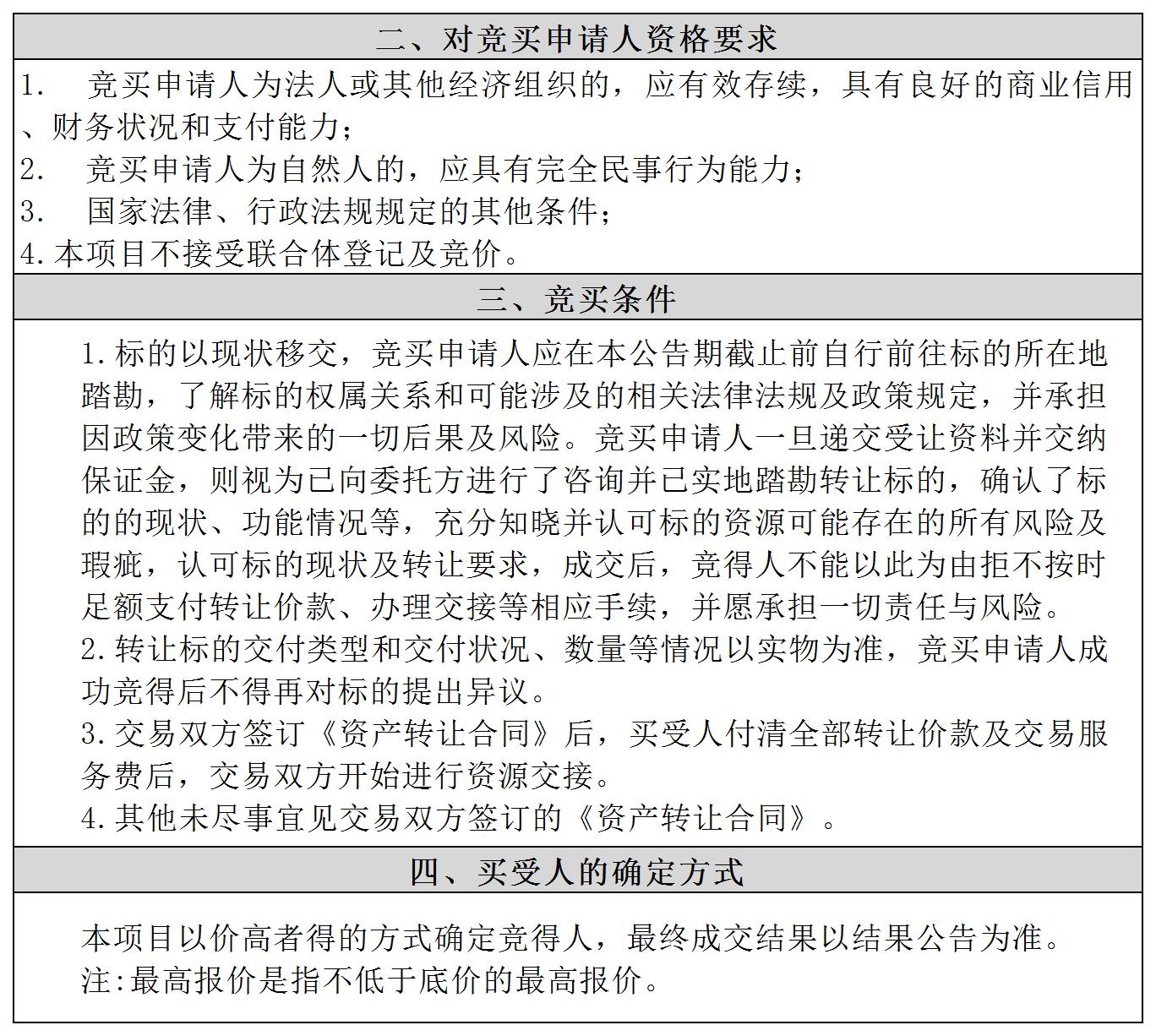1.本項(xiàng)目采取網(wǎng)絡(luò)連續(xù)競(jìng)價(jià)、以價(jià)高者得的方式確定成交人。本項(xiàng)目所稱網(wǎng)絡(luò)連續(xù)競(jìng)價(jià)是指獲得競(jìng)價(jià)資格的意向方依據(jù)公告約定通過電子競(jìng)價(jià)系統(tǒng)進(jìn)行多次應(yīng)(報(bào))價(jià),并最終確定成交人。