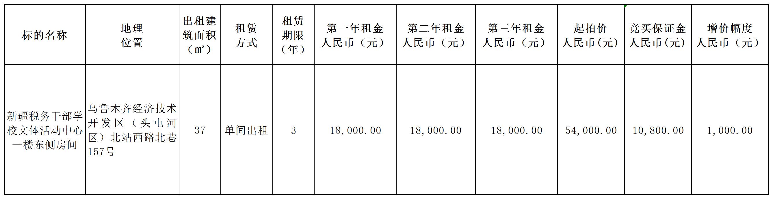 受新疆維吾爾自治區(qū)稅務(wù)干部學(xué)校委托,新疆維吾爾自治區(qū)政務(wù)服務(wù)和公共資源交易中心聯(lián)合新疆公信拍賣有限公司,對新疆維吾爾自治區(qū)稅務(wù)干部學(xué)校空余房屋出租利用項目進(jìn)行公開拍賣,現(xiàn)將有關(guān)事項公告如下: