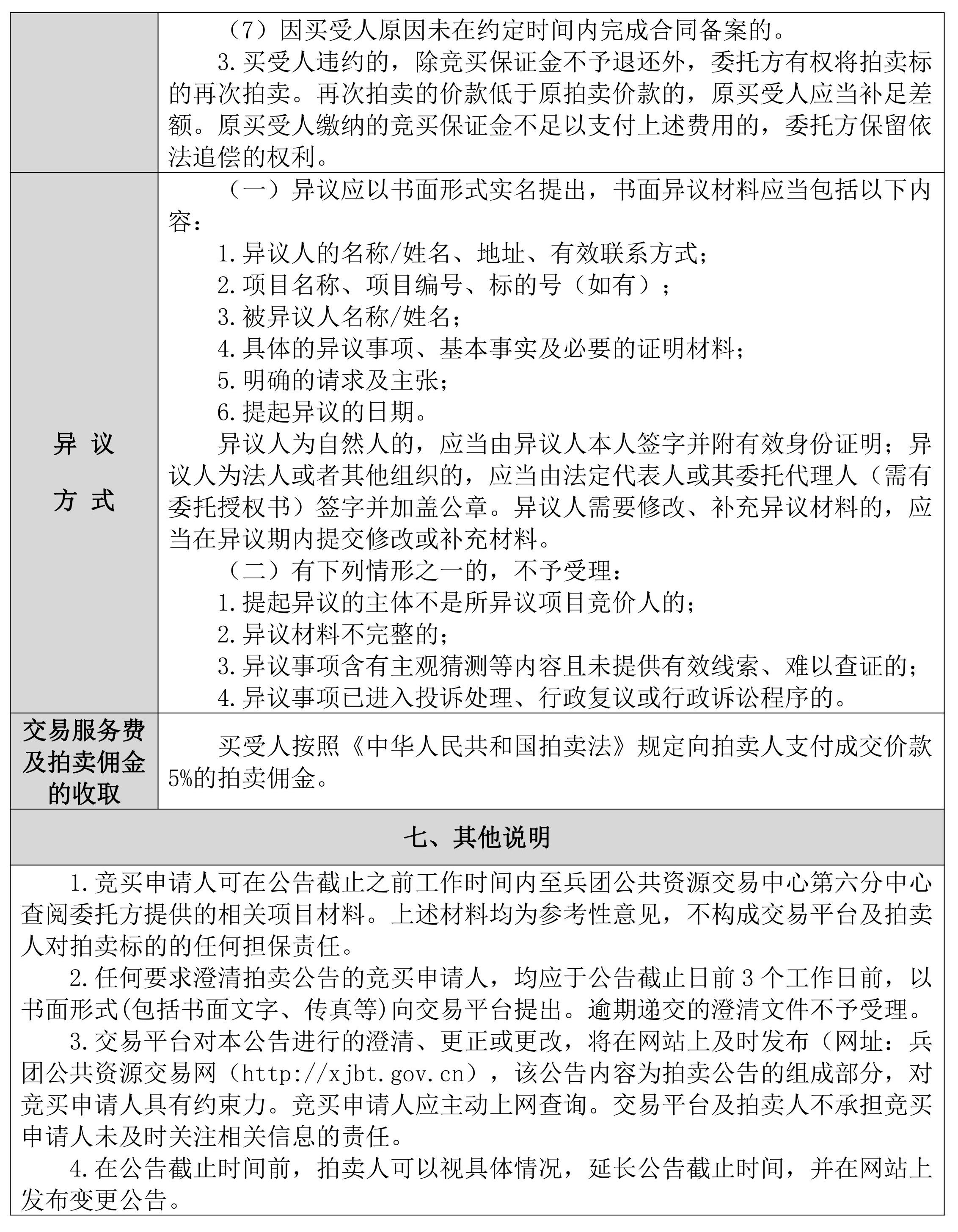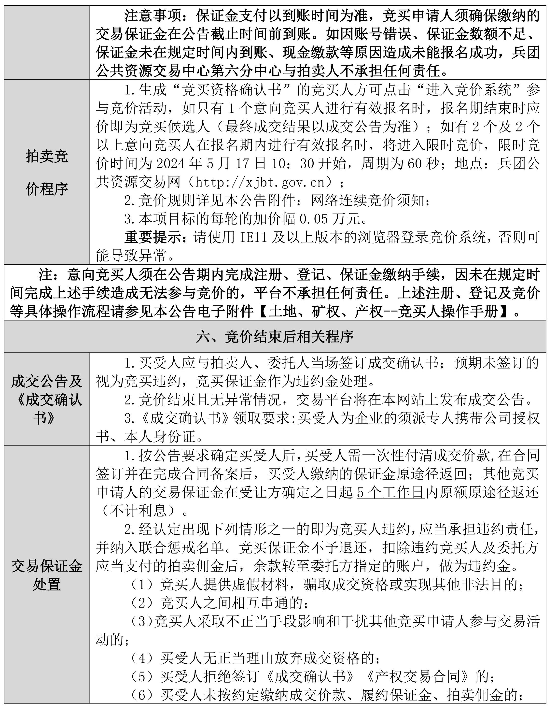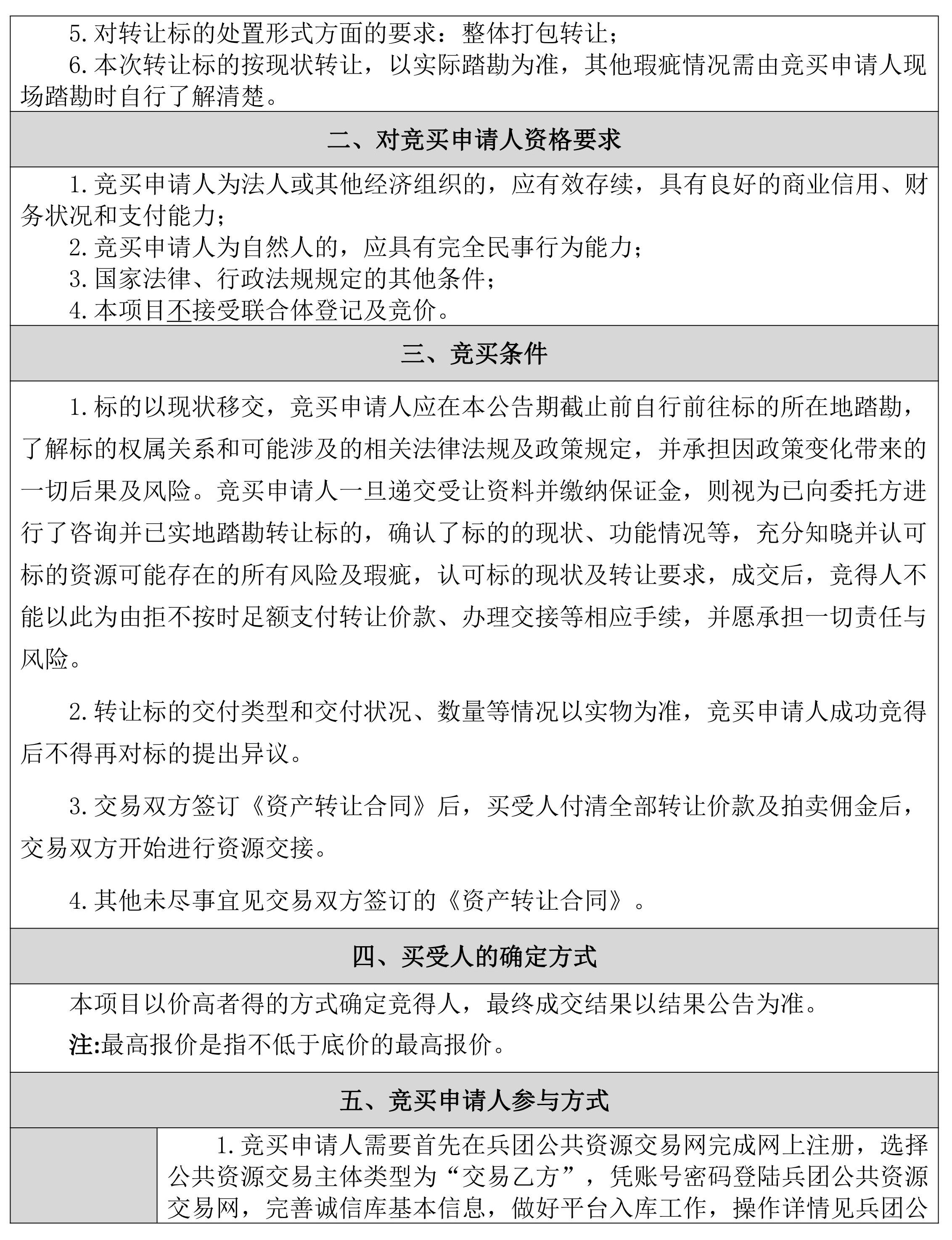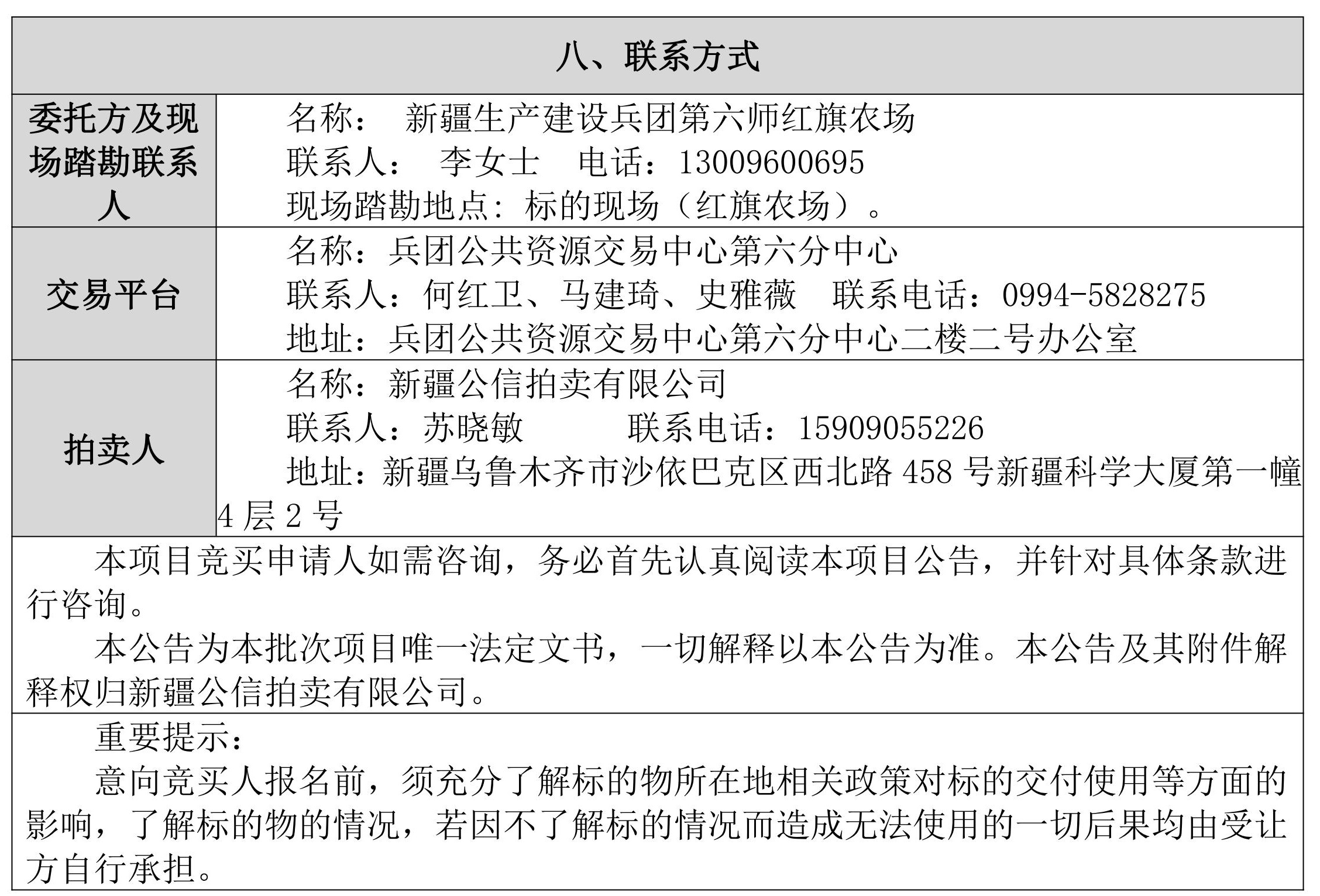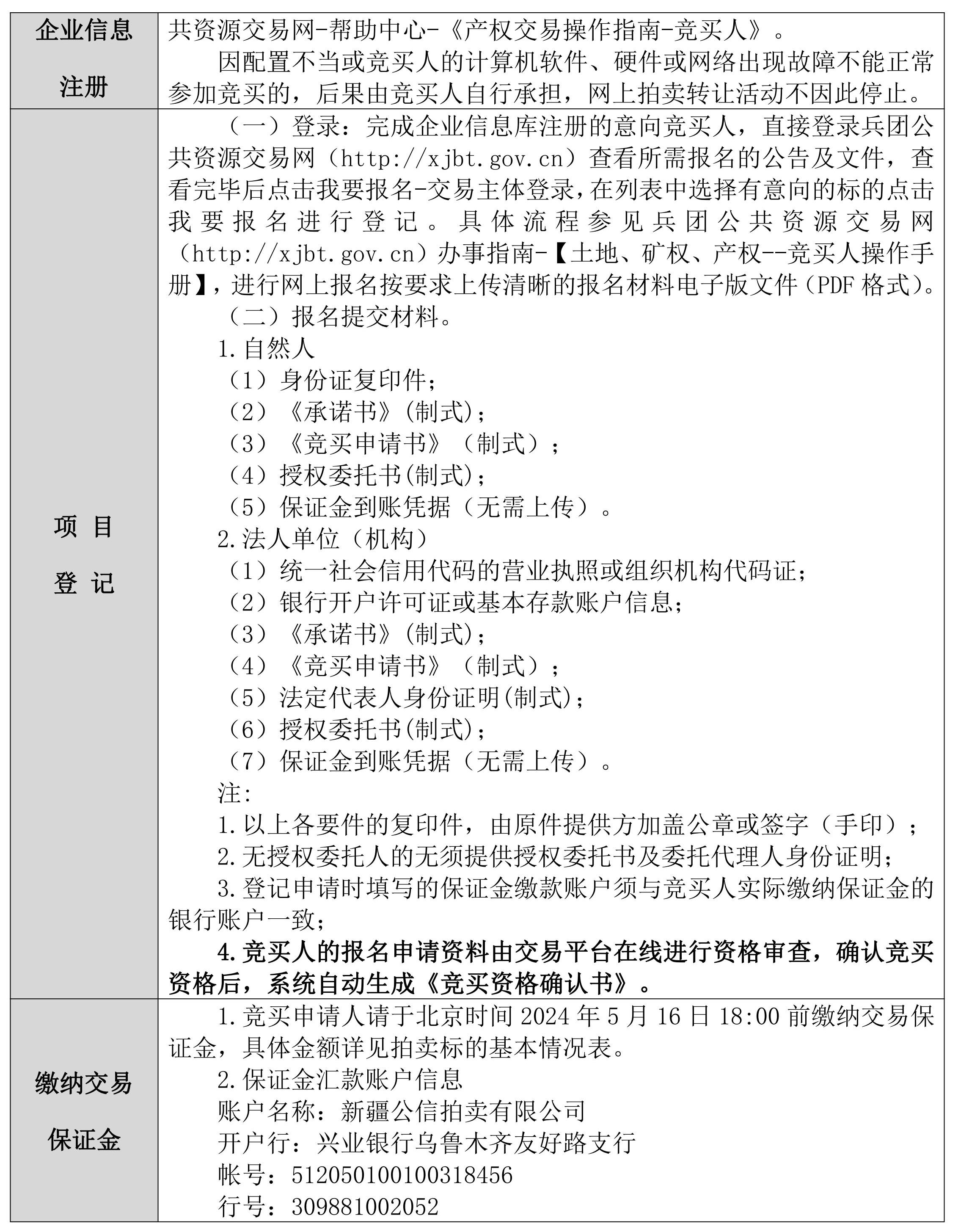 7.競買人在兵團網(wǎng)獲得網(wǎng)員報名中的“資格確認(rèn)書”后才能參加當(dāng)天拍賣會標(biāo)的的網(wǎng)上競價。拍賣會當(dāng)天,競買人應(yīng)提前20分鐘使用臺式或便攜式計算機登錄兵團網(wǎng)。若無法登錄請及時聯(lián)系15909055226.如果拍賣過程中突然斷線或網(wǎng)頁出現(xiàn)異常情況,請及時刷新網(wǎng)頁或重新登陸系統(tǒng)。凡在兵團網(wǎng)平臺上以市場主體登錄競買人的賬號和密碼所進行的操作,即視為競買人認(rèn)可本公司所有紙質(zhì)資料和網(wǎng)絡(luò)發(fā)布資料。操作行為均被視為競買人的行為,競買人須對以其賬號進行的所有活動和事件承擔(dān)法律責(zé)任。
