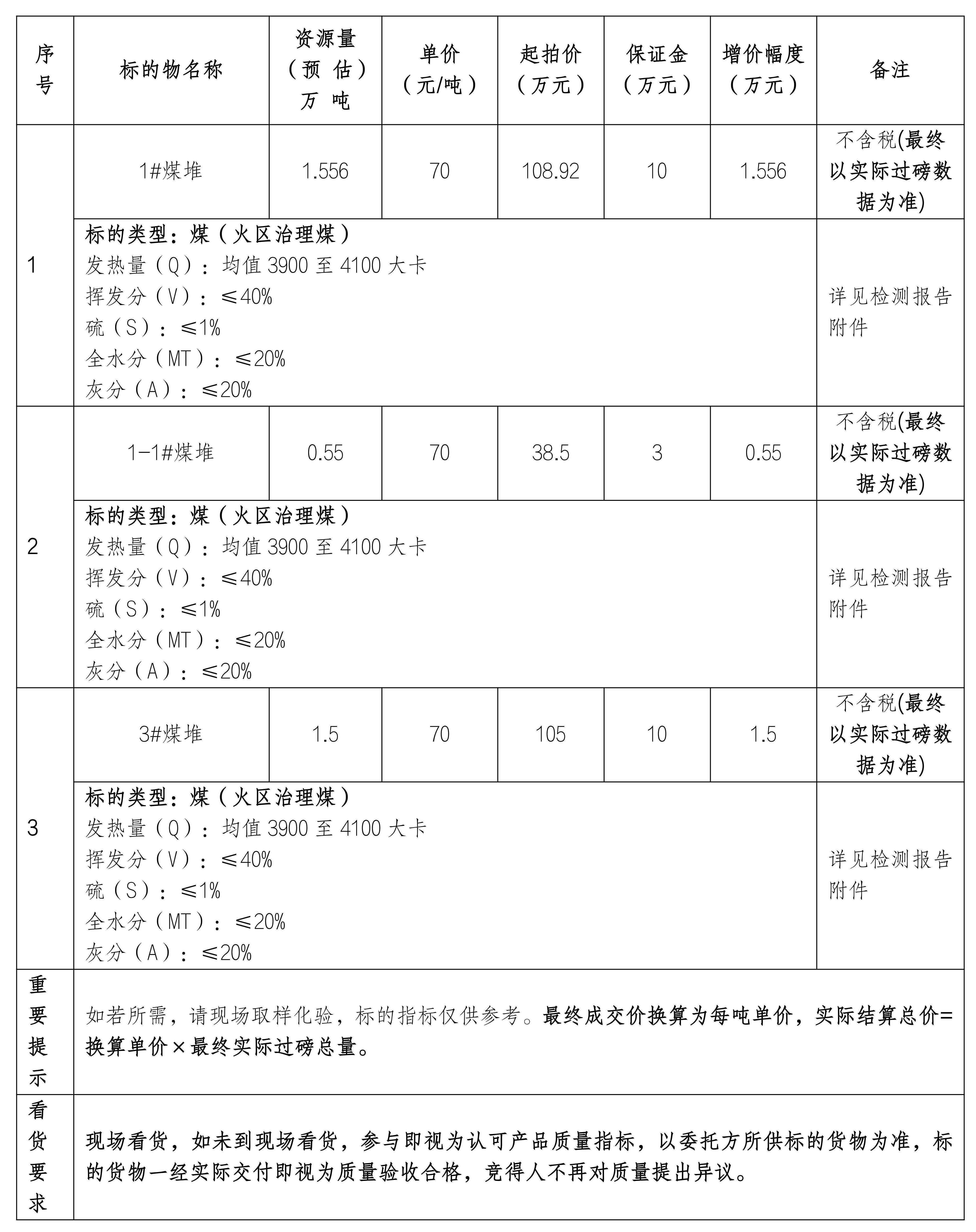 受新疆準(zhǔn)東能源投資(集團(tuán))有限公司委托,新疆公信拍賣(mài)有限公司對(duì)新疆木壘老君廟煤田火區(qū)空白區(qū)第二批殘留煤炭資源進(jìn)行公開(kāi)拍賣(mài),現(xiàn)就有關(guān)事項(xiàng)公告如下: