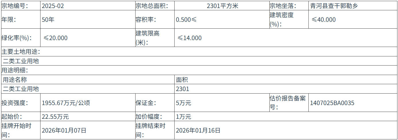 2025-02 號(hào)地塊:2026年01月07日 11時(shí)00分 至 2026年01月16日 11時(shí)00分;