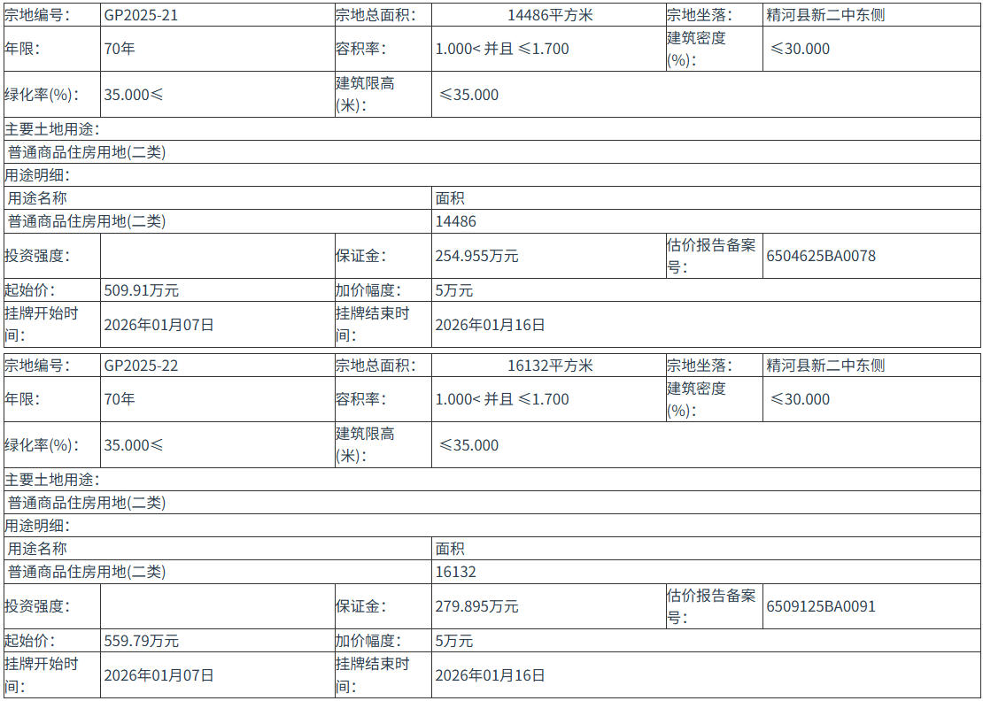 六、本次國有土地使用權(quán)掛牌活動 在 精河縣自然資源局 進(jìn)行。各地塊掛牌時間分別為: