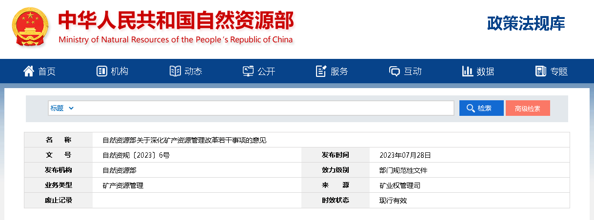 本意見自印發(fā)之日起實施,有效期五年?!蹲匀毁Y源部關于推進礦產(chǎn)資源管理改革若干事項的意見(試行)》(自然資規(guī)〔2019〕7號)同時廢止。本意見實施前已印發(fā)的其他文件與本意見規(guī)定不一致的,按照本意見執(zhí)行。