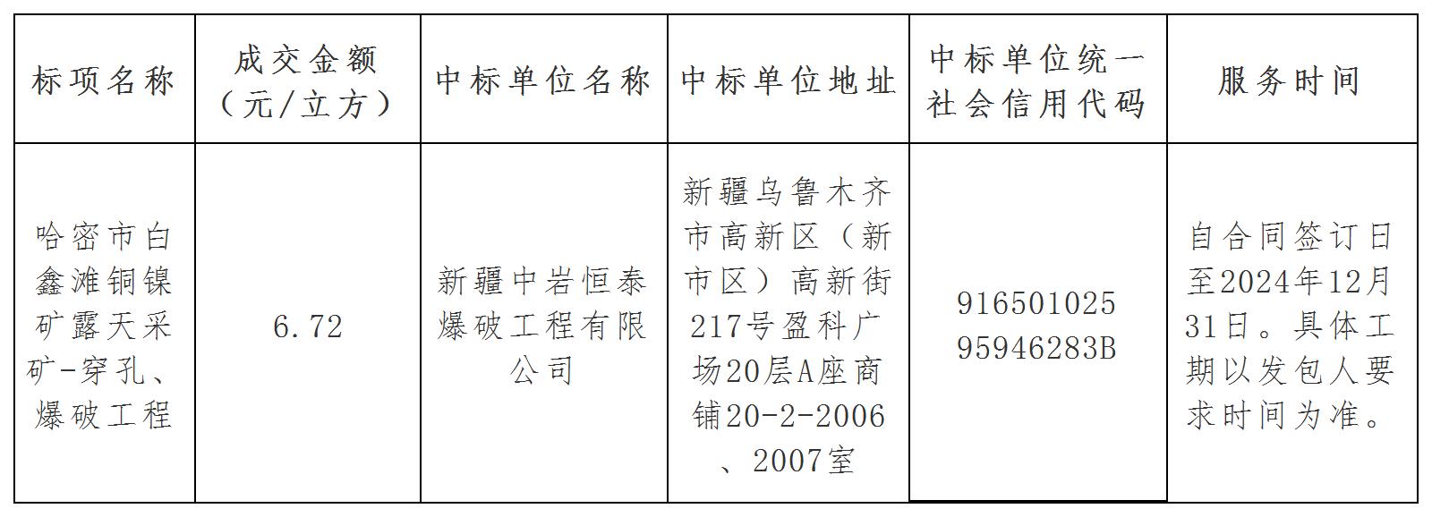 二、項目名稱:哈密市白鑫灘銅鎳礦露天采礦-穿孔、爆破工程