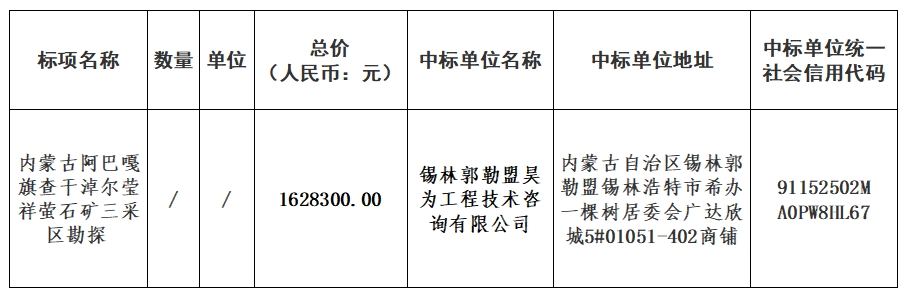 二、項(xiàng)目名稱:內(nèi)蒙古阿巴嘎旗查干淖爾瑩祥螢石礦三采區(qū)勘探