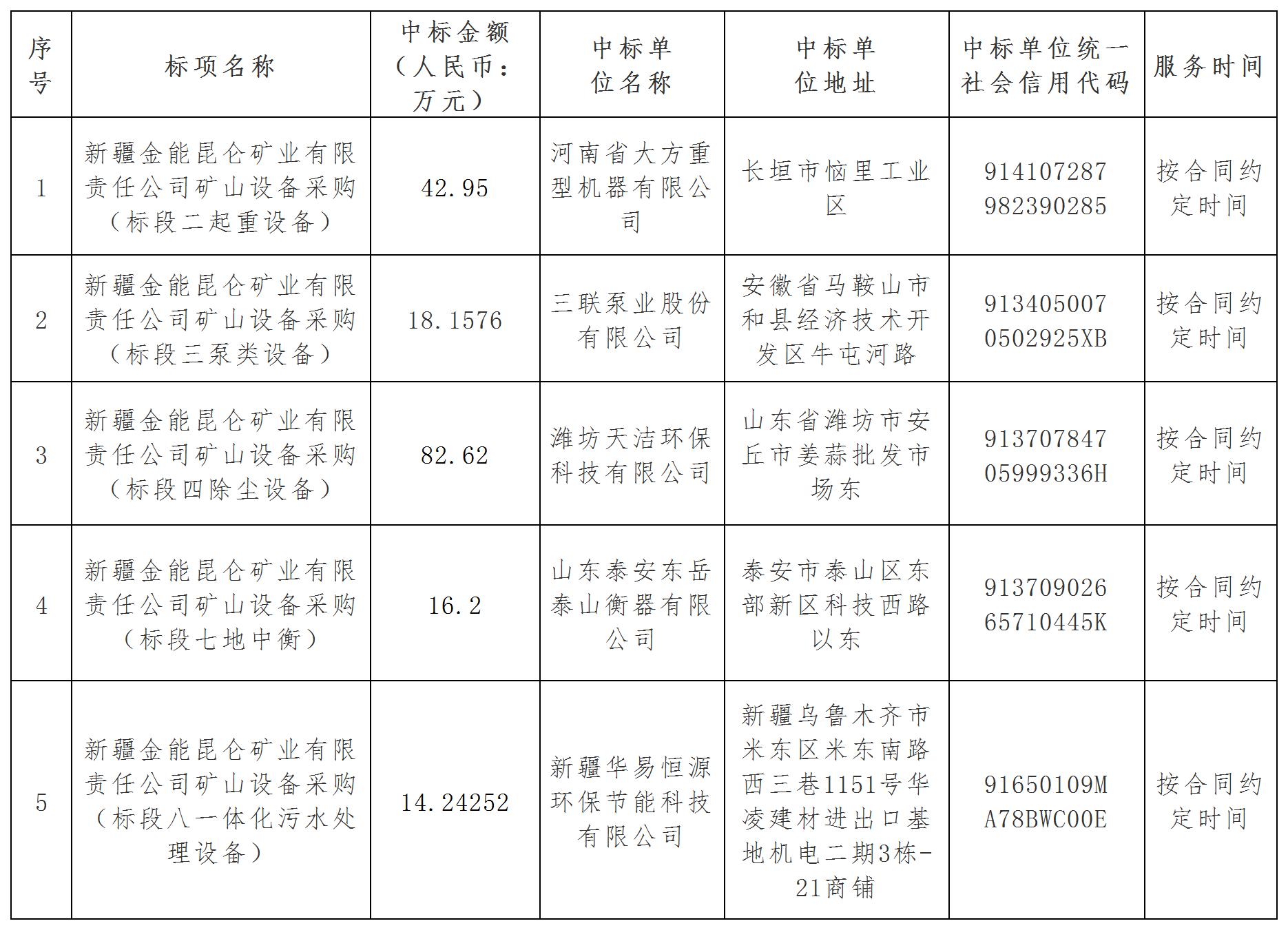 二、項目名稱:新疆金能昆侖礦業(yè)有限責任公司礦山設(shè)備采購項目